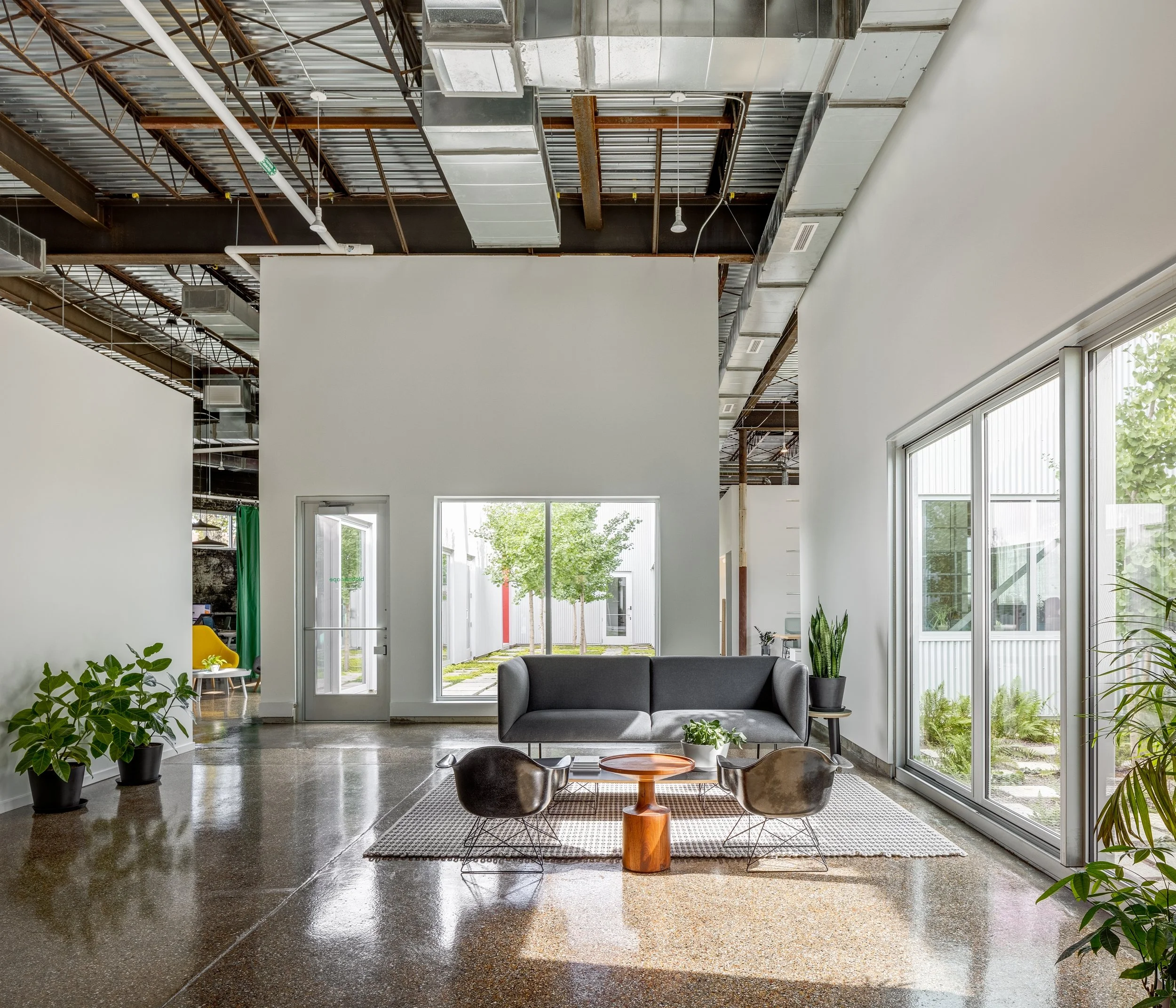 5K is the adaptive reuse of a 13,500 square foot abandoned grocery store into a boutique company headquarters with three distinctive courtyards.