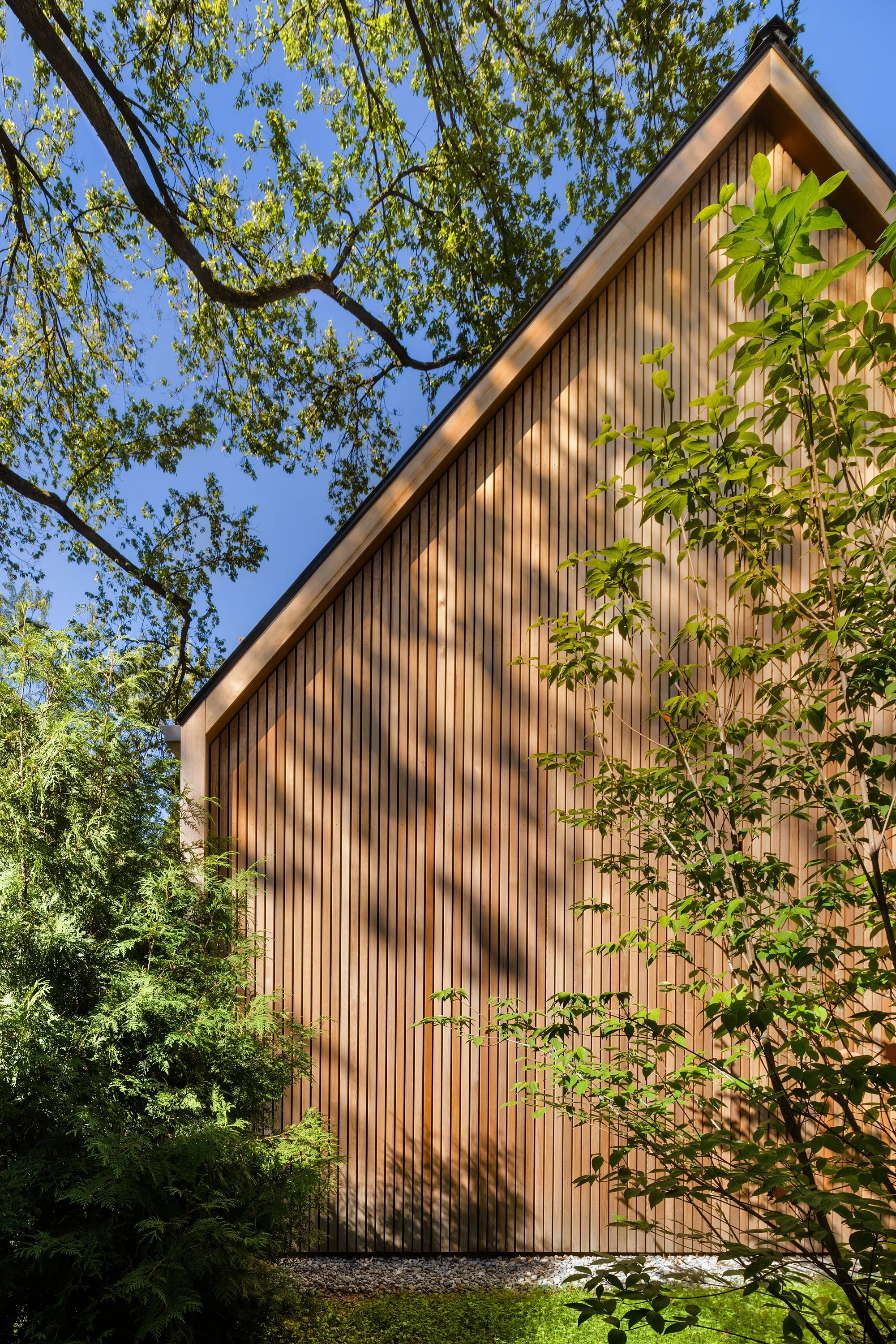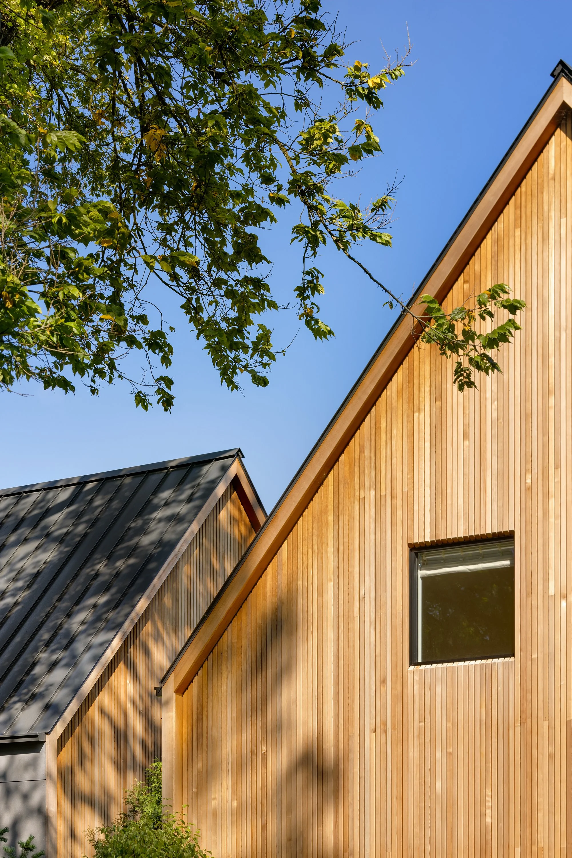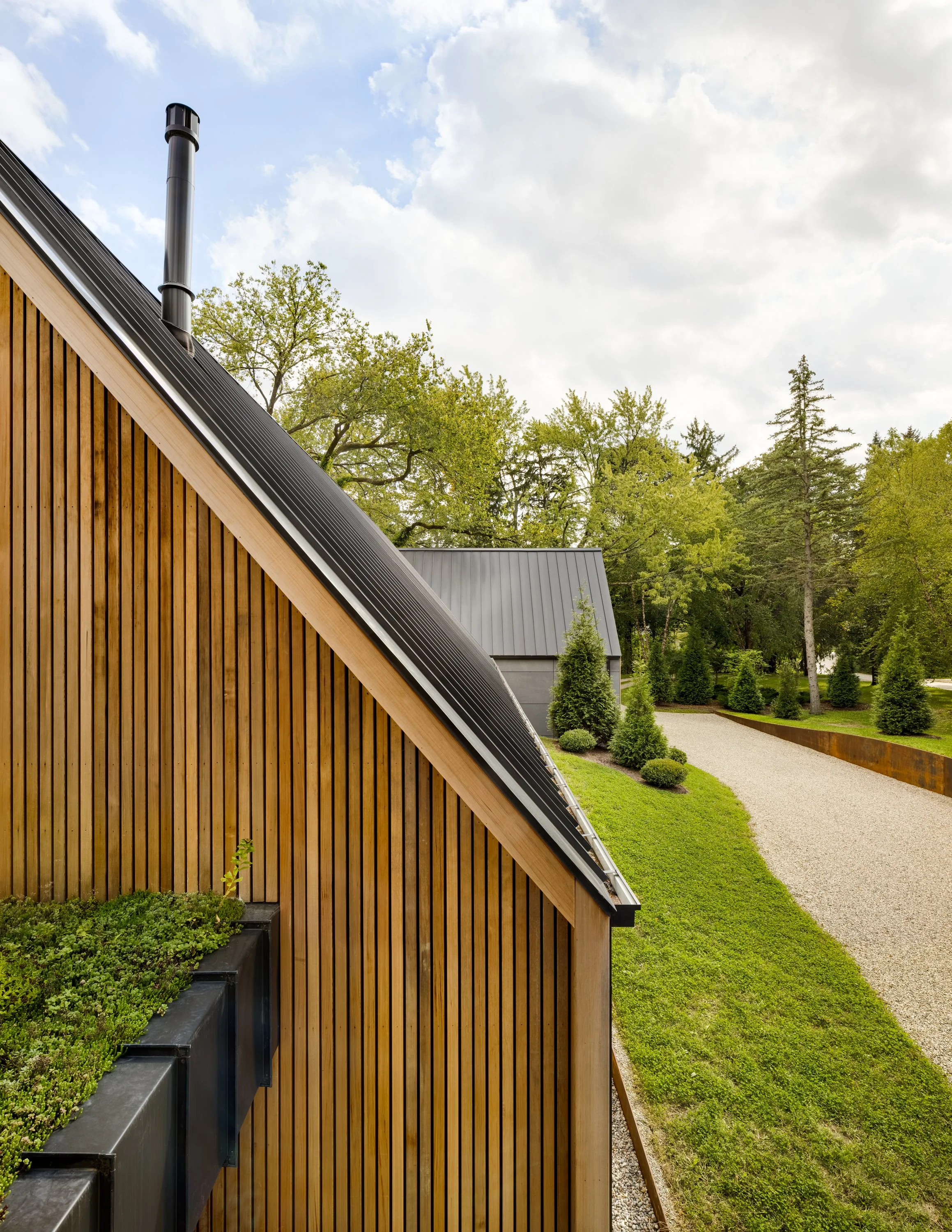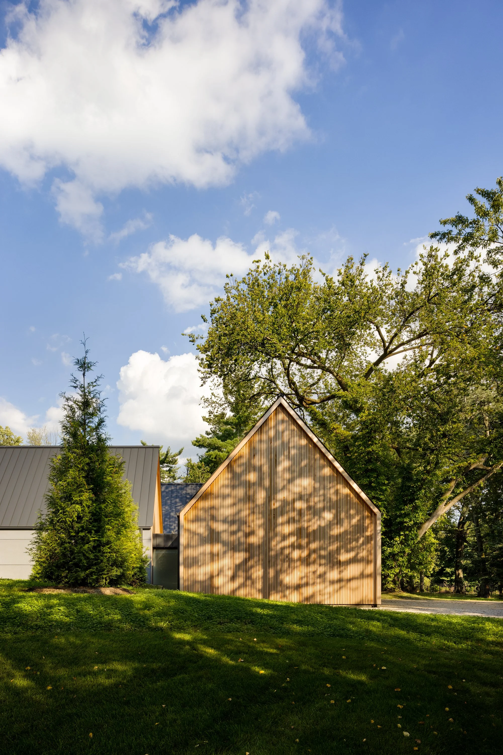 The home’s design was inspired by the classic form of rural Michigan farmsteads—collections of gabled-roof structures built over generations. These familiar forms connect the home to its historic context but are articulated with modern building techniques and materials and innovative detailing.